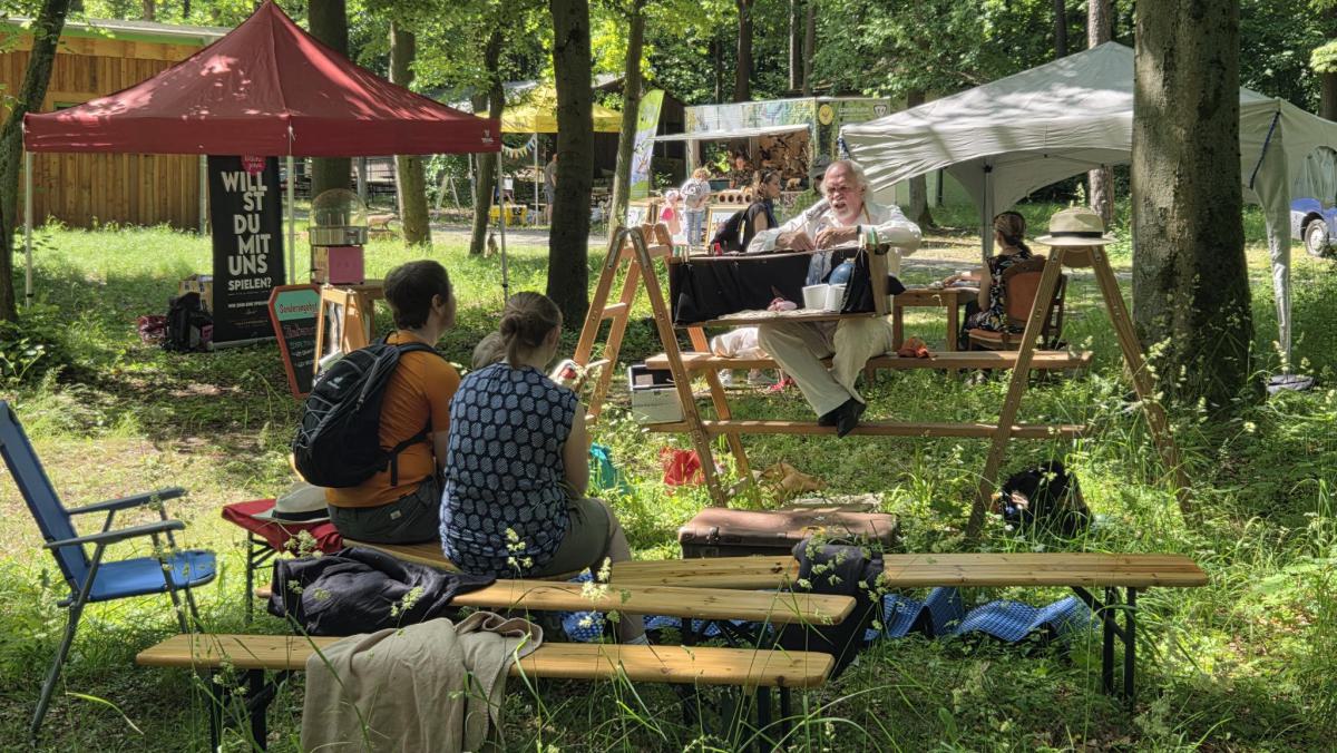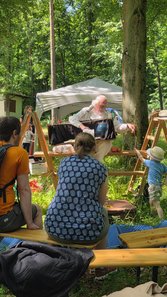 Zum Familien Wandertag auf dem Schottgelände spielt das Bauchladentheater für die Freie Bühne Jena!